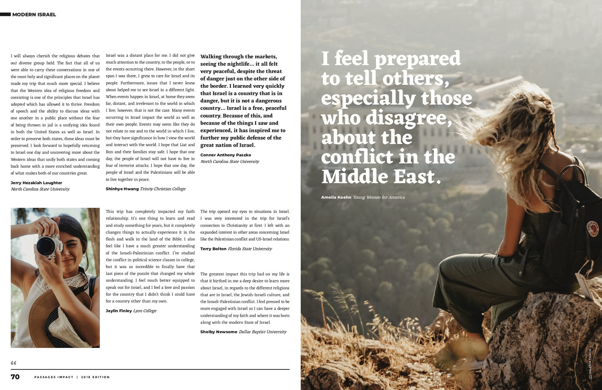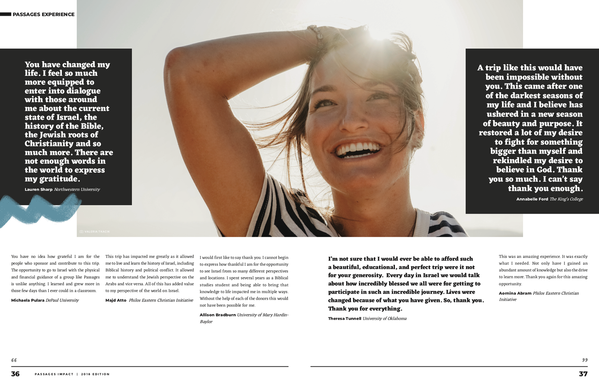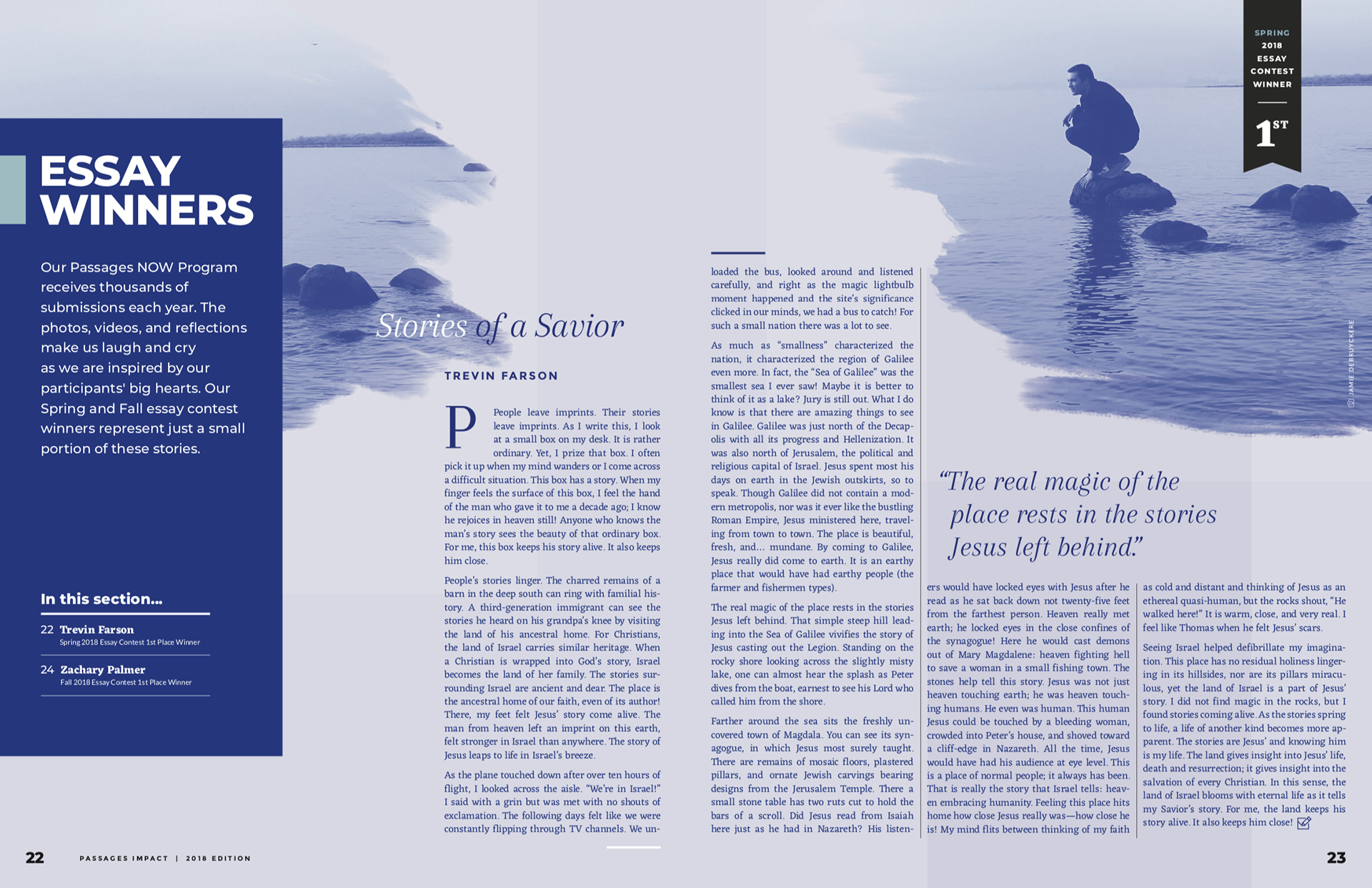 This magazine was created as an end-of-the-year gift for donors. It contains various student testimonies, student essays, program overviews and much more. All photography is student submissions. 8.5 x 11, 100 pages. Printing by American Printing. 2018.